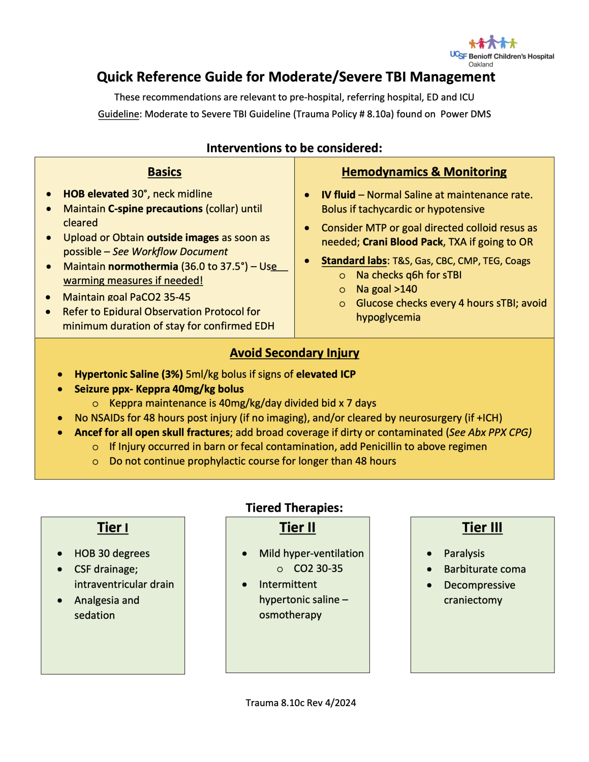 Oak: Management of TBI